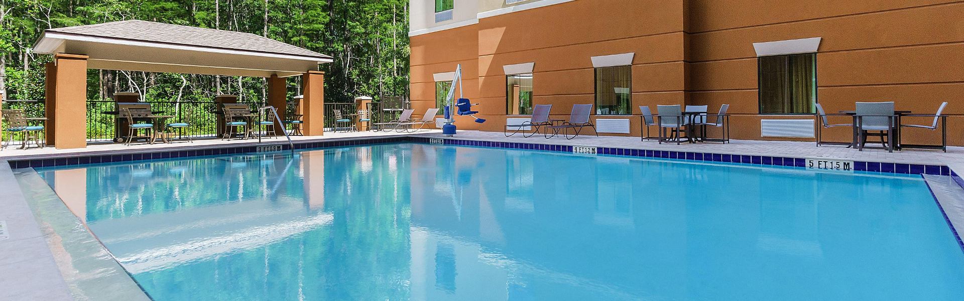 Au Candlewood Suites Lake Buena Vista des hôtels Walt Disney World Good Neighbor, il n’y a pas de ceintures de sécurité disponibles pour les invités à la piscine.