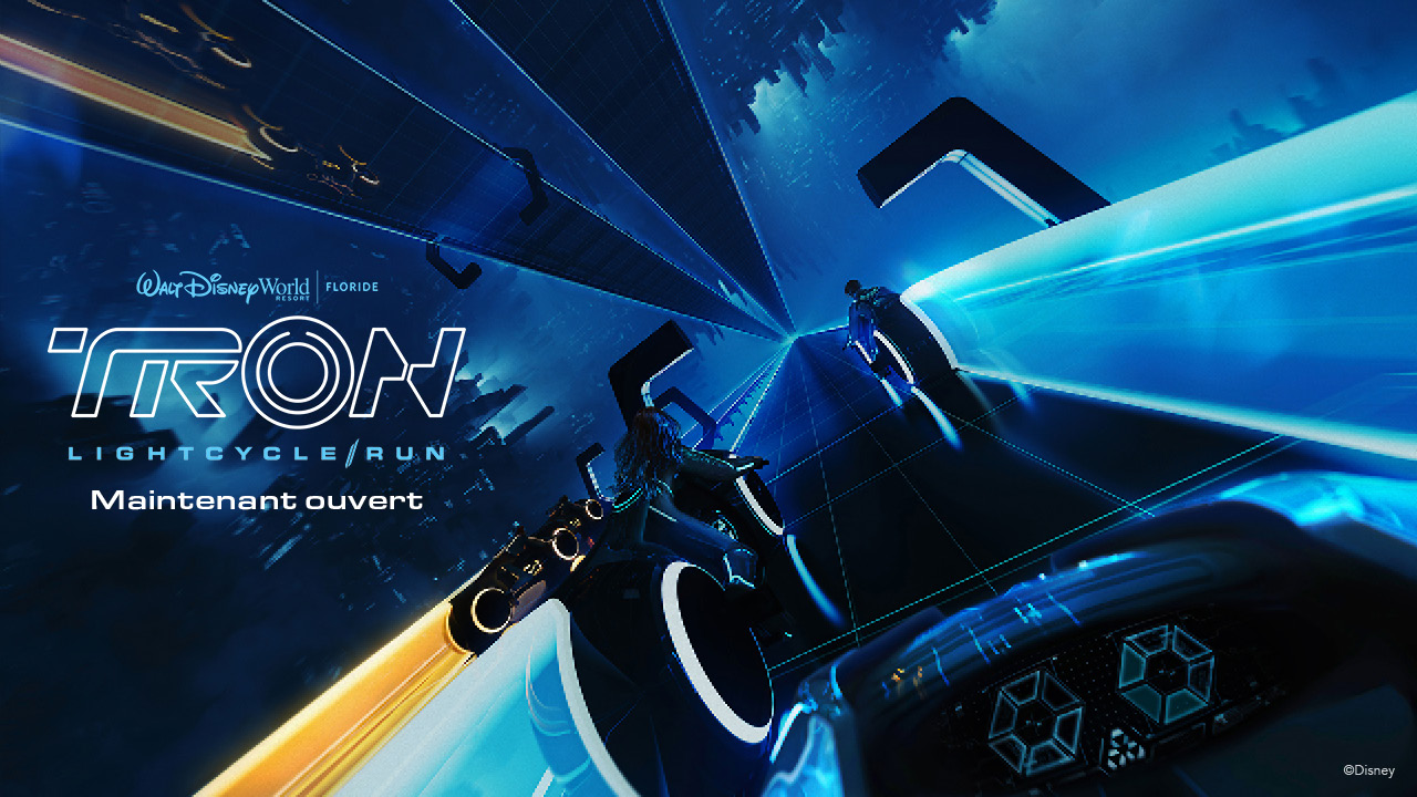À vos marques. Prêt. Filez dans le monde de TRON Lightcycle / Run, un manège de haute technologie à grande vitesse et à sensations fortes qui dépasse les limites de ce qu’ont vécu les visiteurs au parc Magic Kingdom. Montez à bord de votre propre lightcycle et accélérez dans le manège le plus rapide dans l’histoire des parcs Disney.